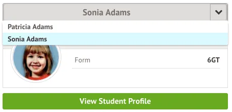 If you are the Primary Guardian for more than one child in the school, you can access and view each child through the same portal by clicking on the name at the drop-down menu with the children's names in the top-left of the home page, then change sibling.